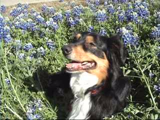 Miranda came into our lives in 2003 through South Texas Aussie Rescue. Having been hit by a car, it is guessed that Miranda roamed the streets with a shattered shoulder and leg for three months before someone picked her up